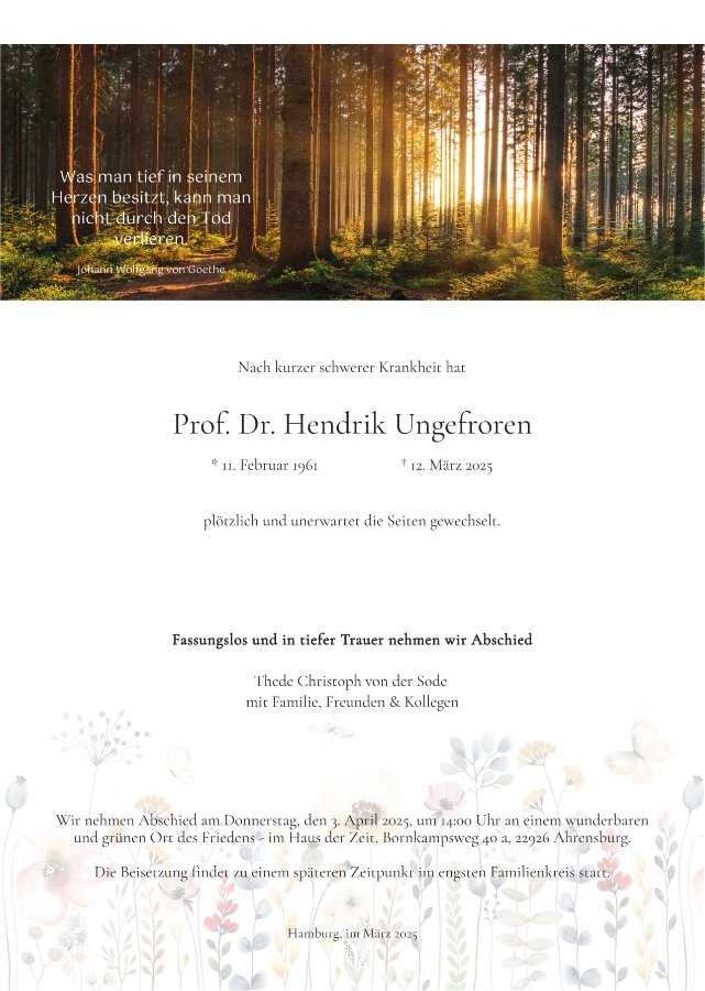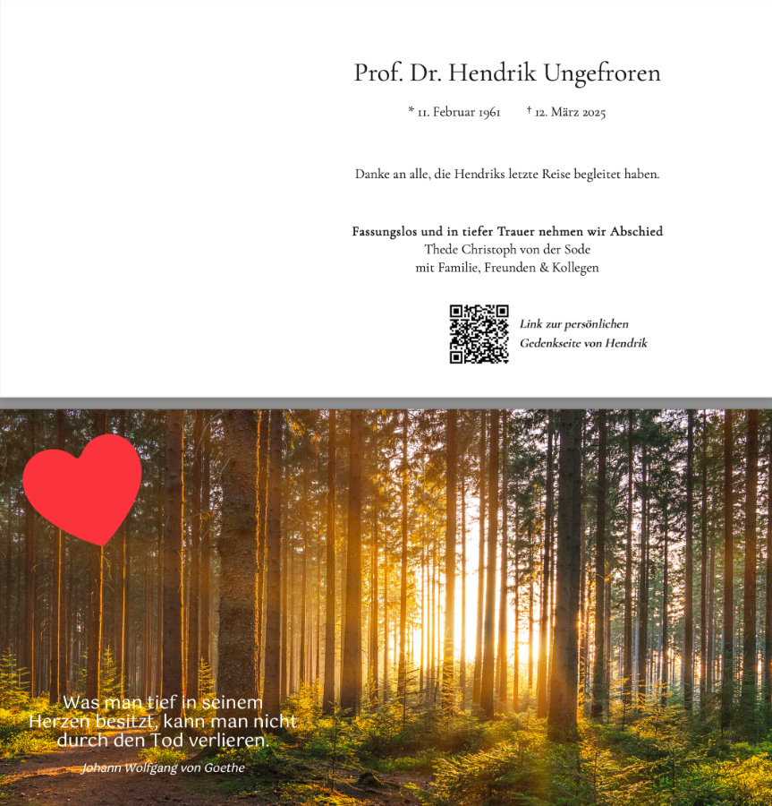 Hendrik, die Erinnerungen an die gemeinsame Zeit mit dir schätze ich sehr und sie werden mich ein Leben lang begleiten. Es bleiben liebevolle Erinnerungen an dich, die mir auch heute noch ein Lächeln schenken.